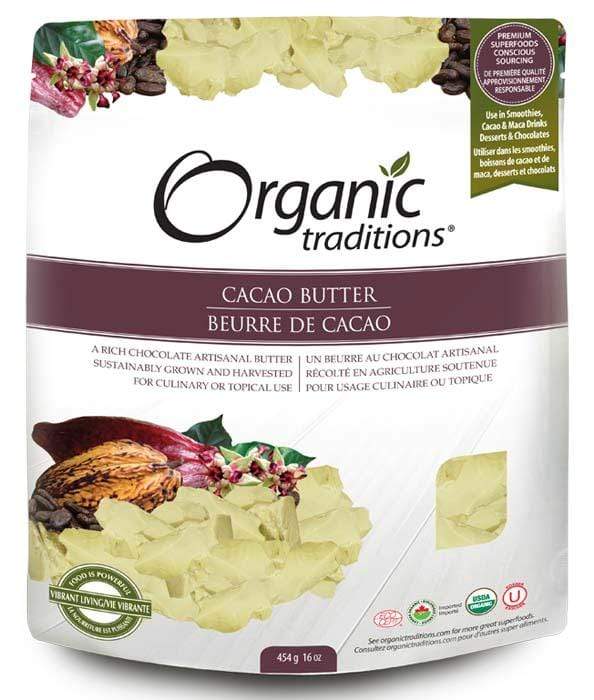 Cacao was once so revered by the Mayans and the Aztecs that it was used as currency. Obtained from the whole cacao bean, cacao butter is a nourishing edible oil containing healthy fats along with a host of antioxidants. Cacao butter is obtained by pressing the beans at low temperature, thereby separating the oil from the protein and the fiber. There are no chemicals or solvents used in the process. Organic Traditions artisanal Cacao butter is Certified Organic, gluten-free and kosher. With its chocolate aroma and silky smooth texture, it makes the ideal, decadent chocolate butter for both culinary and topical applications.